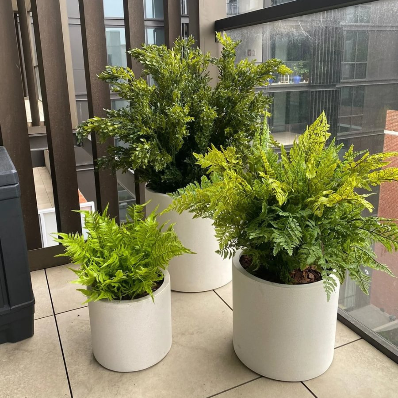 Our Feather Bush is part of UV-protected plants range, so we love styling them in a trio of other outdoor artificial plants. We recommend pairing it with our Royal Fern and Buxus Plant.